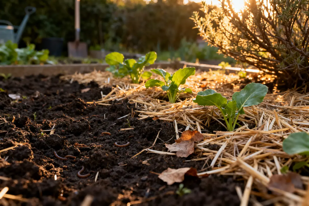 - Apporter de la matière organique variée : compost mûr, foin ou résidus de culture nourrissent champignons et vers.